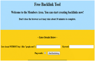Di bawah ini ada tool yang dapat anda pakai untuk mendapatkan 500 backlink gratis dengan mudah melaui Free Backlink Tool.